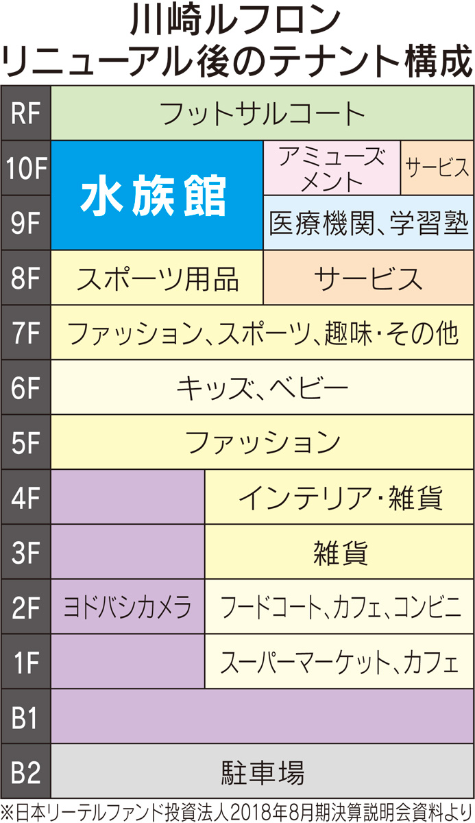 ■水族館空白地帯、川崎駅前に水族館 私達が暮らす川崎市は人口が151万人を超え、全国20政令指定都市の中で7番目の人口を有する大都市へと成長しました。全国的に人口減少という流れの中、本市は人口増加を続けるなど、若く元気なまちという印象もありますが、やがて人口減少となり、急激な少子高齢化が進むことは確実です。こうした将来においても財政を健全に維持し運営し、しっかりとした都市計画を持つことは重要であります。都市計画については賛否両論、様々な意見を耳にしますが、持続可能なまちづくりを目指すことは必要不可欠であります。 本市をみると、その中心となる川崎駅周辺、新川崎駅周辺、武蔵小杉駅周辺等々、各区において、そのまちづくりの一端がみて取れます。特に川崎市の表玄関である川崎駅周辺ではその動きは顕著であります。川崎駅西口に立地するラゾーナ川崎プラザの集客数は目を見張るものがありますが、反面、川崎駅東口では閉店した「さいか屋」の跡地にパルコが商業施設を開業予定となっておりますが、かつての東口のような集客が戻るかは未知数であります。このような状況の中、川崎ルフロンを保有する日本リテールファンド投資法人のファンド運営会社の三菱商事ユービーエス・リアルティが大改修に着手し始めました。何故の大改修なのか。その明確な説明は日本リテールファンド投資法人の本年8月の決算報告から見えてまいります。その内容は「川崎ルフロンは5Km圏100万人という肥沃な商圏人口と乗降客数が豊富な川崎駅前という大変恵まれた立地条件もあり〜中略〜 物販比率が減少している一方、時間消費型テナント比率が大きく増加しており、消費環境変化を反映したテナント構成を推進しています。具体的には、1階に都市部エリアで出店実績が豊富なスーパーマーケットのライフの出店が決定し〜中略〜9・10階においては、今回のリニューアルの目玉ともいえる水族館の誘致が決定しました」との事であります。 日本では水族館を併設した商業施設としてスカイツリーのある東京ソラマチ、池袋サンシャインシティ、等がありますが、数としてはまだ多くはありませんが、いずれも多くの集客を実現しており、その結果として商業施設もその営業は順調に推進しております。2005年に開業したアクアパーク品川の年間入場者数は174万人にも達しています。川崎ルフロンはこれまでの実績として集客数は年間約720万人だったものが水族館誘致により873万人まで増やす計画となっています。誘致については仄聞ですが九州地方にある水族館が関係するとの声を聞いておりますが、いずれにいたしましても水族館の開業で市内全体の活性化が期待されます。開業の予定は2020年の夏頃となっています。